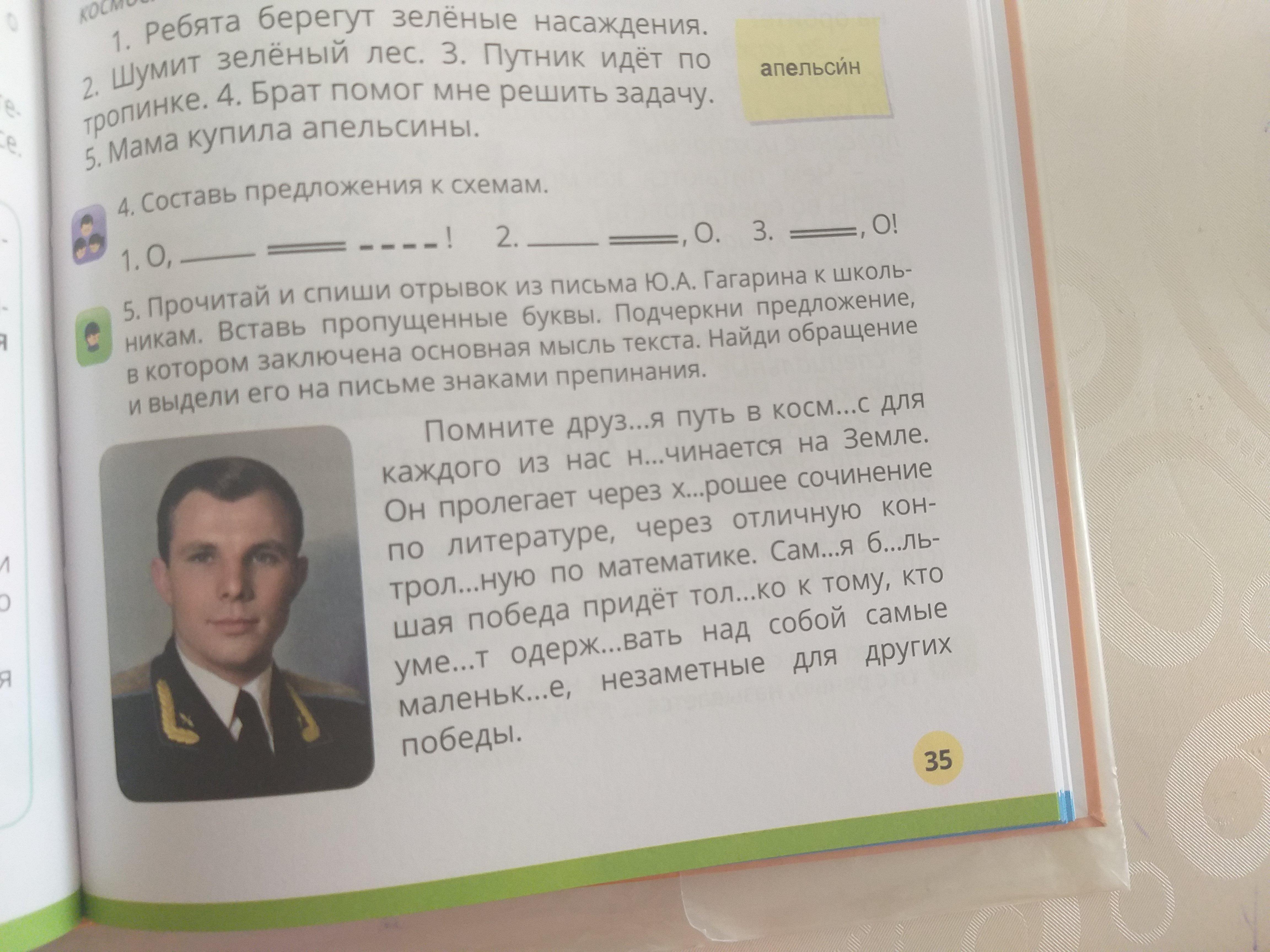 Помните друзья, путь в космос для каждого из нас начинается на Земле. Он пролегает через хорошее сочинение по литературе, через отличную контрольную по математике. Самая большая победа победа придет только к тому, кто умеет одерживать над собой самые маленькие , незаметные для других победы.