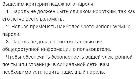 Нельзя применять легкие пароли, пароли которые ты уже использовал
