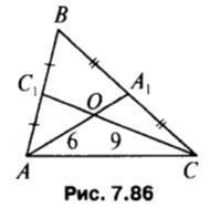 Свойство медиан треугольника - они делятся точкой пересечения в отношении 2:1.