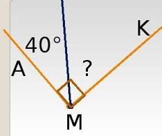 неизвестный угол равен 50° так как это прямой угол, это показывает квадрат вначале угла