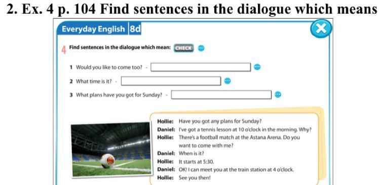 3)have you got any plans for Sunday?