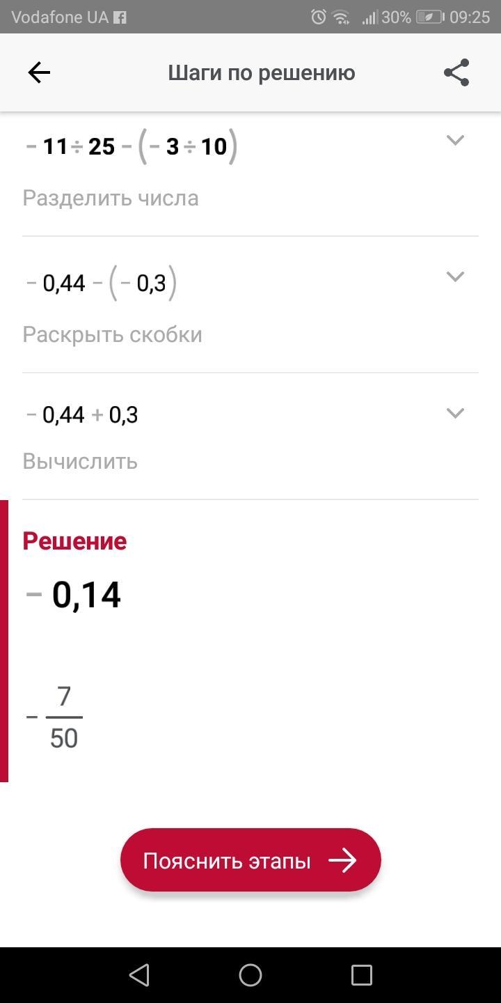 -11/25 - (-3/10) = =-11/25+3/10=-185/250=-0.74