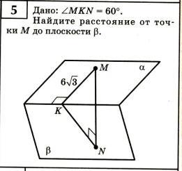 Так как MN – перпендикуляр на плоскость β (то есть МN – расстояние от точки М до плоскости β), а KN лежит в этой плоскости, то MN перпендикулярно KN, в значит ∆MNK – прямоугольный.