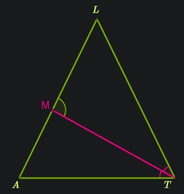В равнобедренном треугольнике ALT проведена биссектриса TM угла T у основания AT,