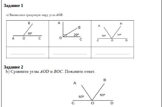 задание 1) А) угол АОВ=115 градусов В) угол АОВ=70 градусов С) угол АОВ=70 градусов