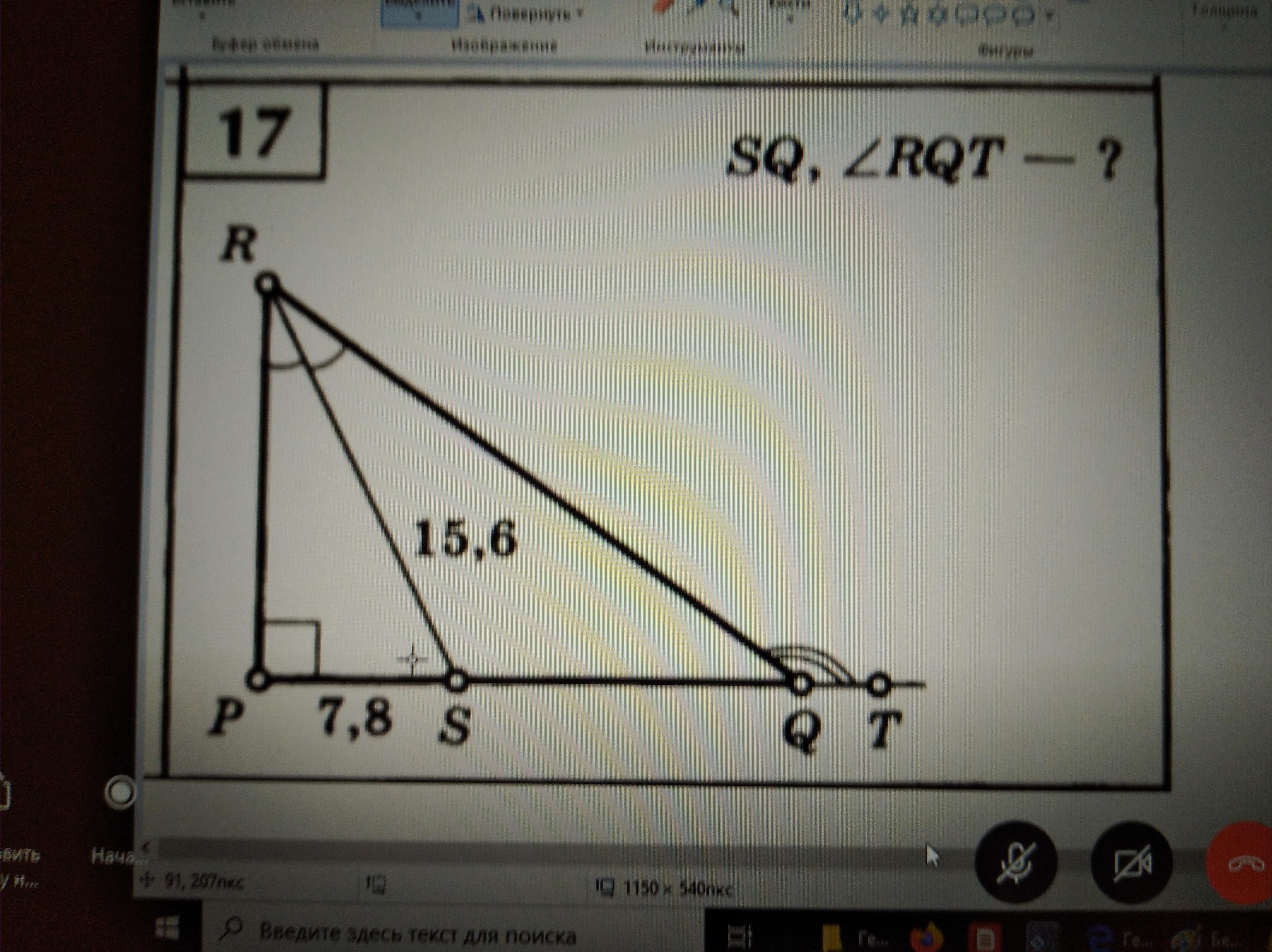 Рассмотрим ΔRPS - прямоугольный, PS=0,5RТ, т.к. 15,6:7,8=2. Это значит, что катет PS лежит против угла 30°, ∠РRS=30°.