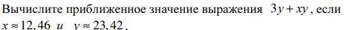 Если x≈12,46; у≈23,42; то 3у+ху=3×23,42+12,46×23,42=329,19