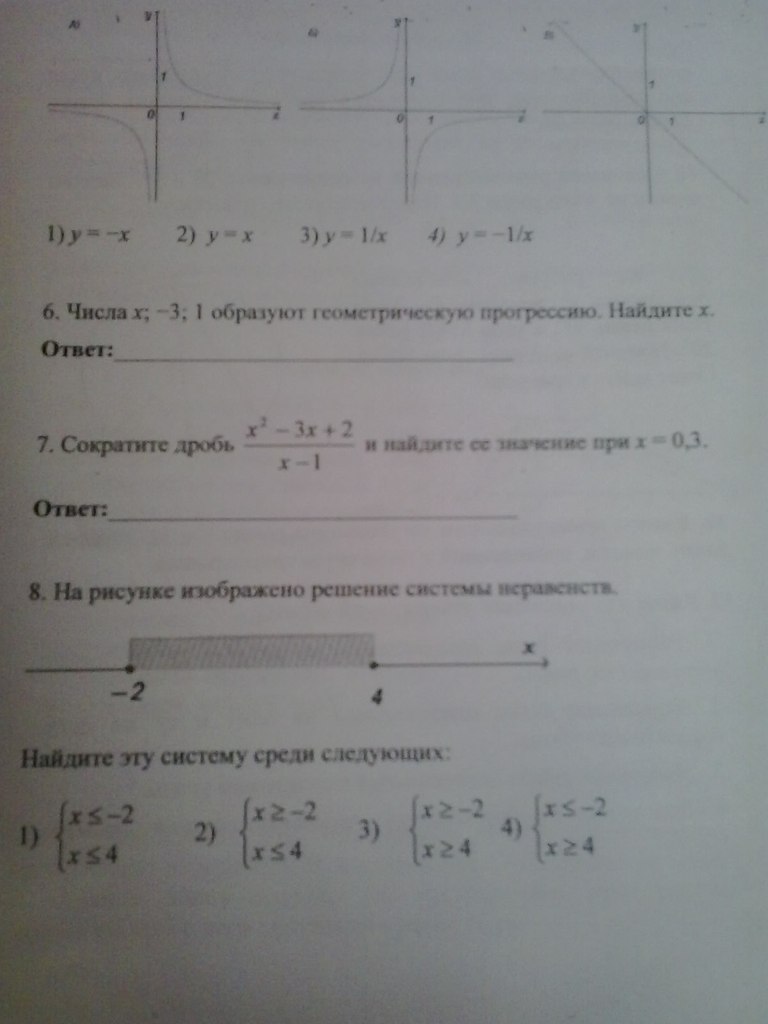 №5 Установите соответствие между графиками функций и формулами,которые их задают
