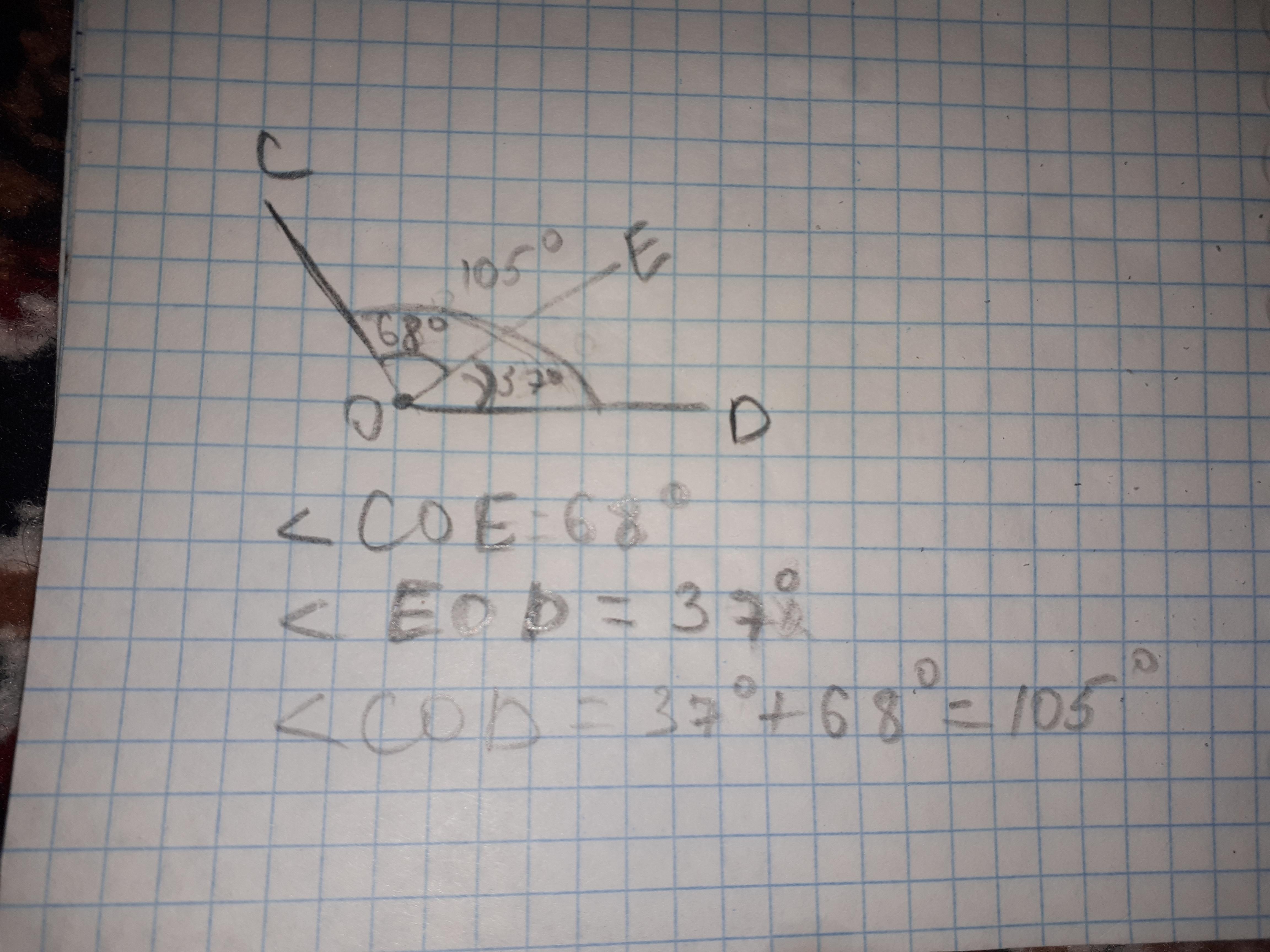 Луч OE делит угол COD на два угла. Вычислите меру угла COD, если ∠COE = 68°, ∠EOD = 37°.