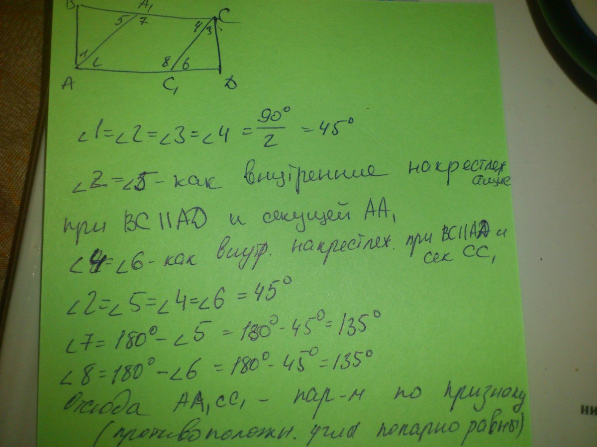 в прямоугольнике проведенны биссектрисы двух противолежащих углов. определите вид получившегося при том четырехугольника . найдите его угла. пожааалуйста)))