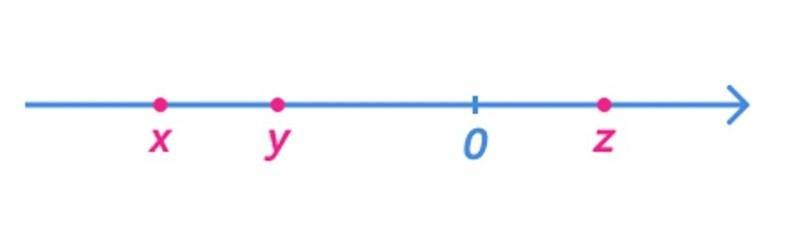 На координатной прямой отмечены числа x, y и z. Какое утверждение относительно этих чисел верно?