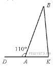 Для данного треугольника ABK сумма каких углов равна 110°?