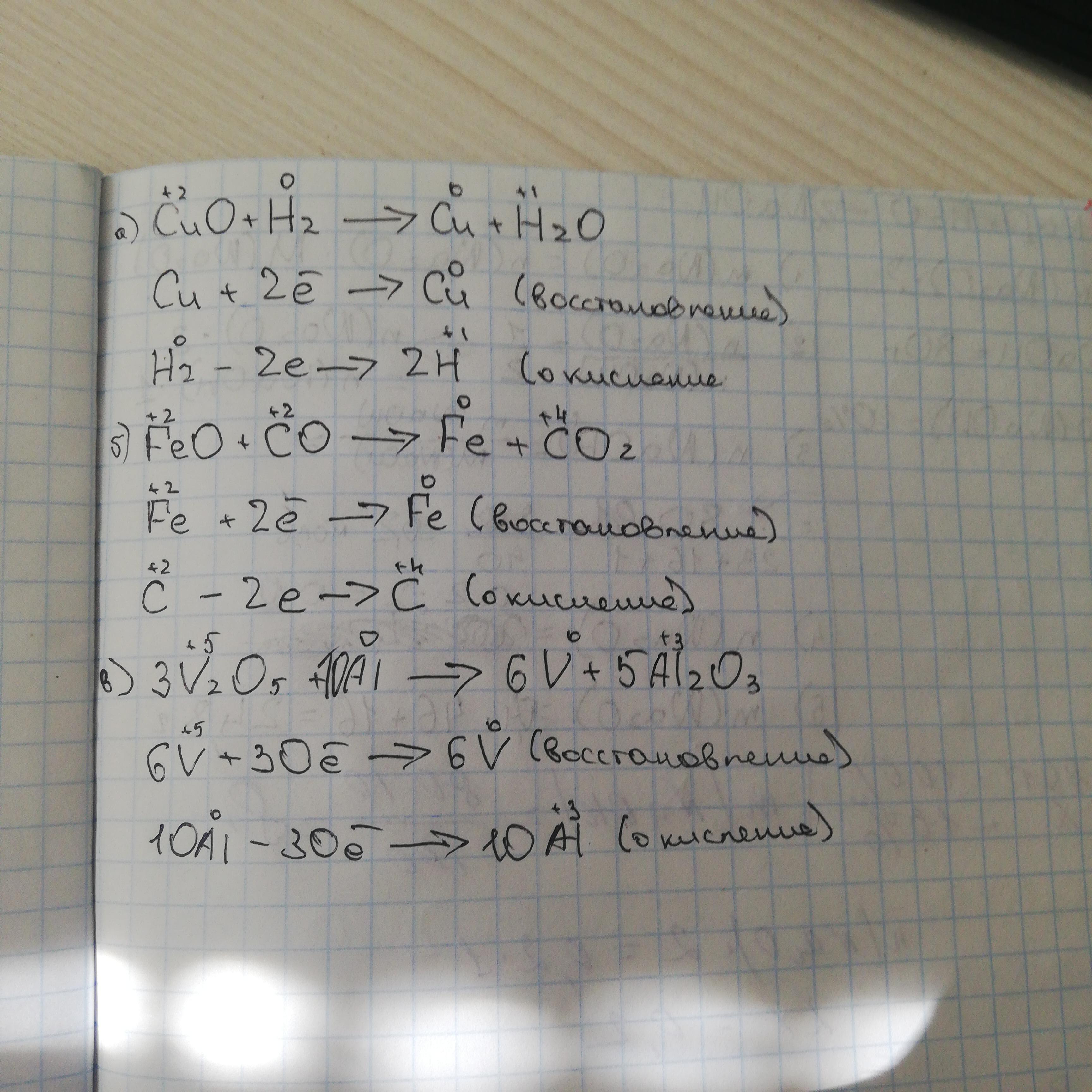 А) восстановления водородом оксида меди (II)
