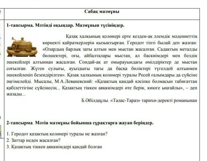 1.Гедрот тiптi былай деп жазган: «Олардын барлык заты алтын мен мыстан жасалган»