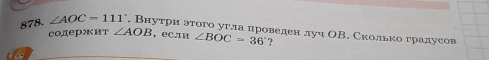 3)угол АОВ= 111 градусов- 36 градусов= 75 градусов