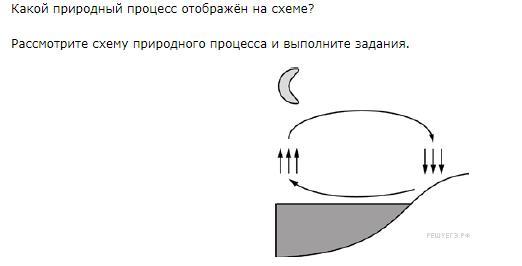 Для выполнения данного задания необходимо рассмотреть предложенный рисунок (схему). В данном случае изображена территория на стыке суши воды. Эти поверхности нагреваются по-разному, над ними днем образуется разное атмосферное давление и появляется ветер. Такой ветер называется ночной бриз.