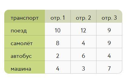 В лагерях ребята 1 2 и 3 отрядов записали таблицу на каком транспорте они приехали. На сколько человек больше приехало в лагерь на поезде чем на машине?