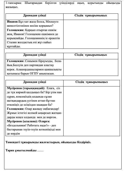 Тұжырым: Тарих ұмытылмайды, ол мәңгі есте қалады.