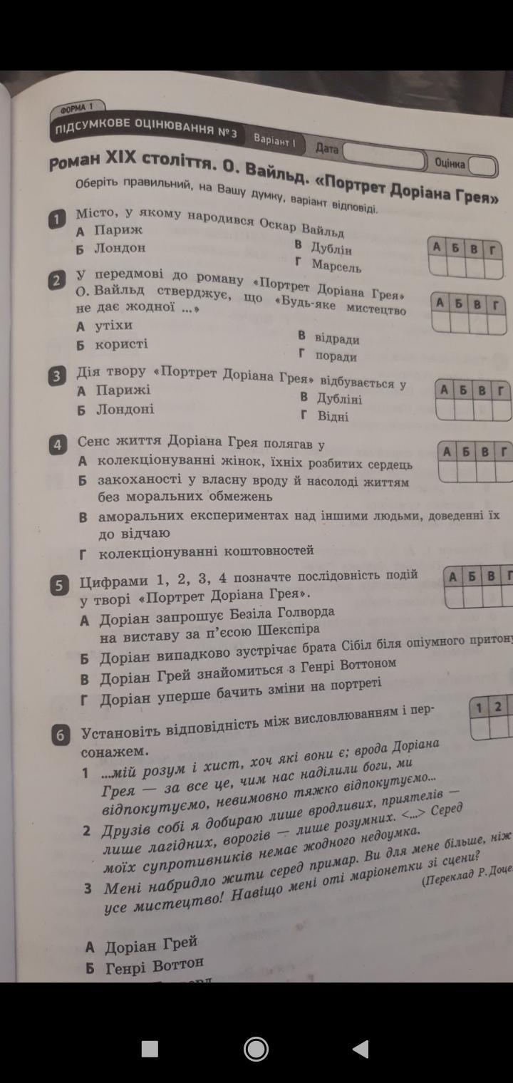 Оскар Уайльд контрольна