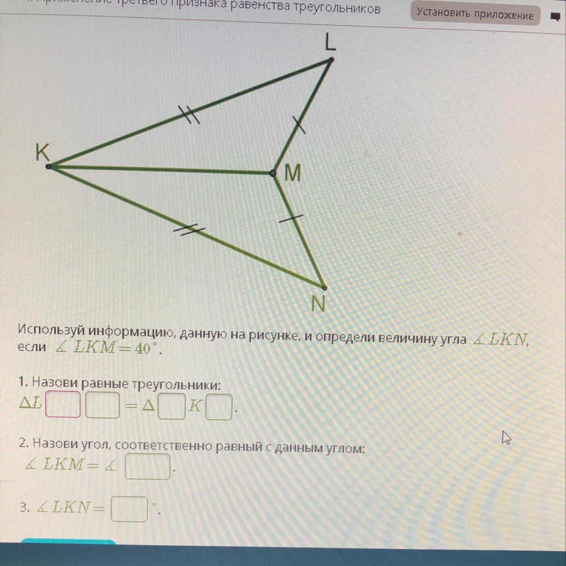 2. Назови угол, соответственно равный с данным углом: