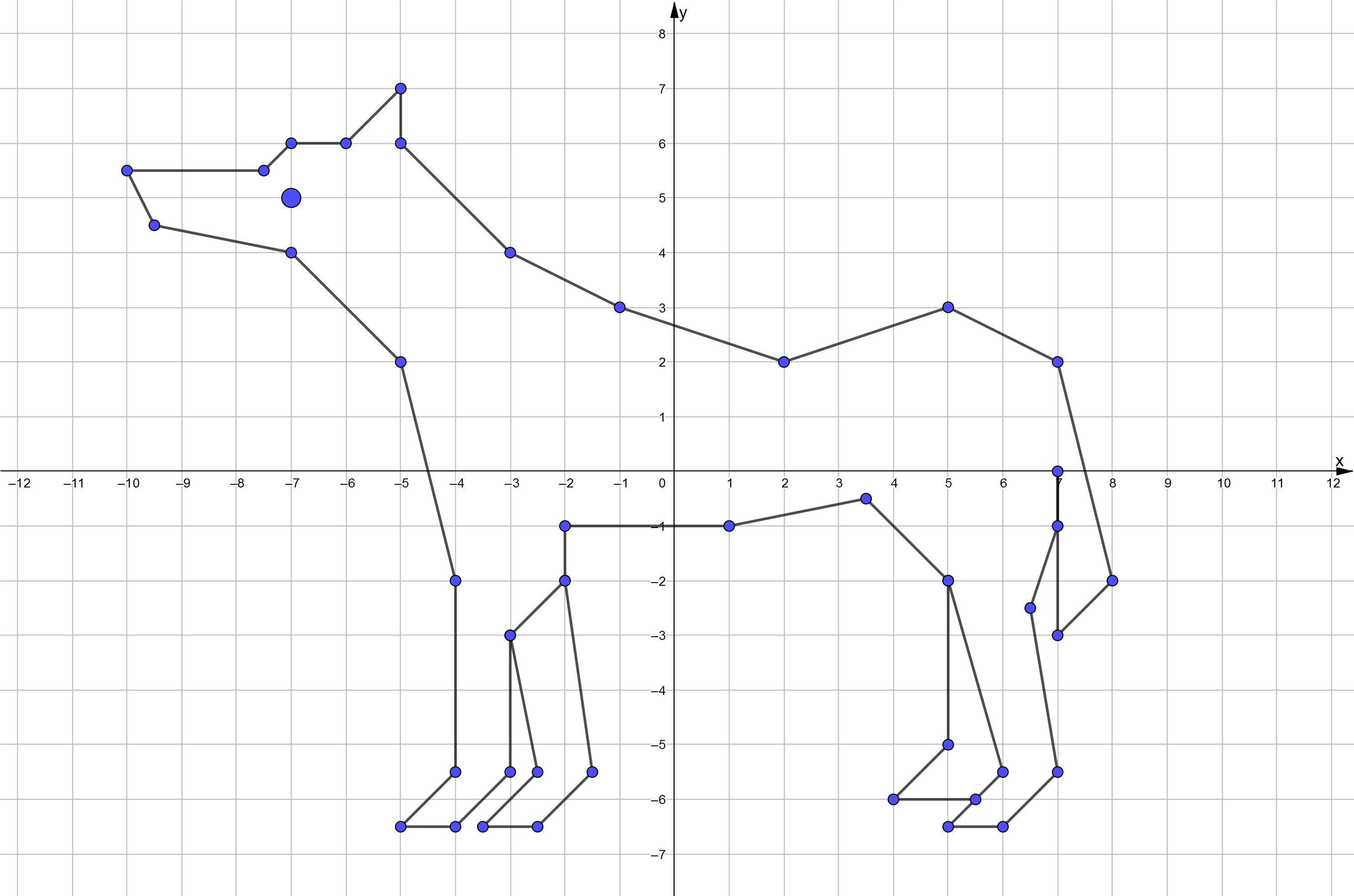 (-2,5; -5,5), (-3; -3) и (5; -2), (5; -5), (4; -6), (5,5; -6) глаз (-7; 5)
