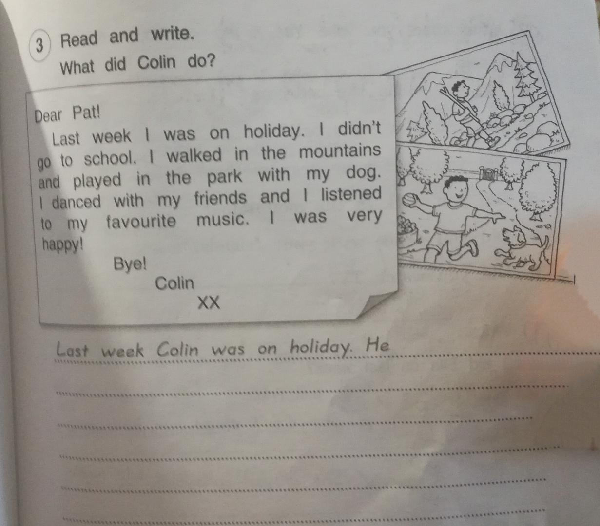 he did not go to school, walked in the mountains, played with a dog in the park, danced with friends and listened to his favorite music