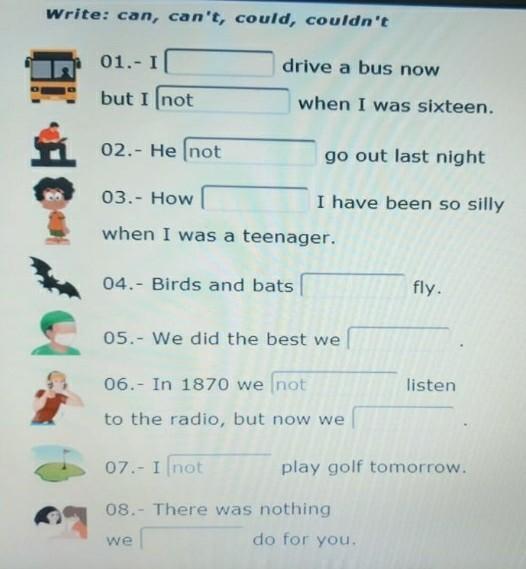 (1) I CAN drive bus now, but I COULDN'T when I was sixteen.