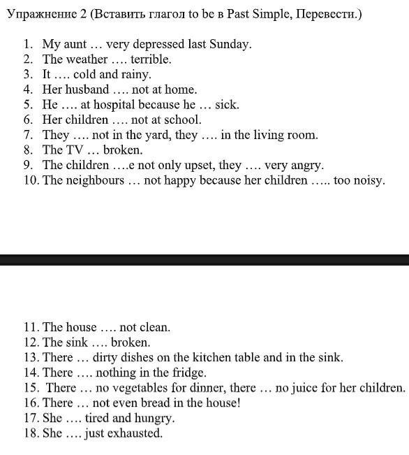 1. Моя тетя была очень удрученной в прошлое воскресенье.