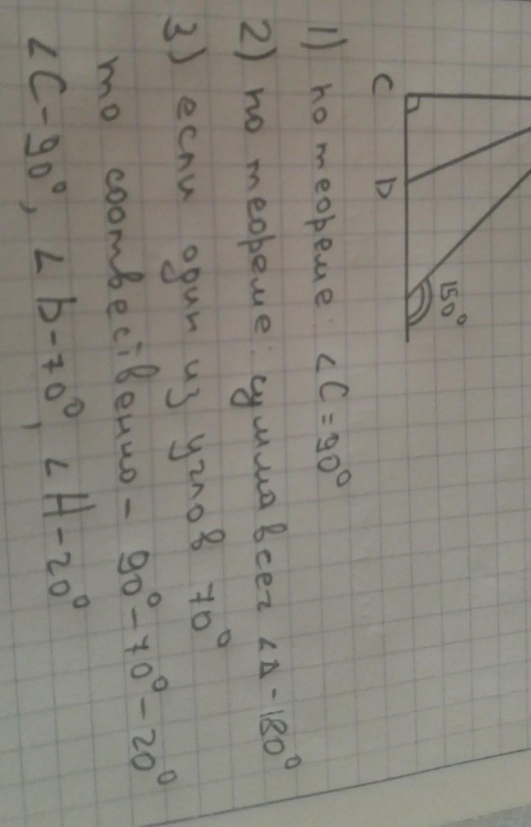 1) если один из углов 70°, соответственно другой угол будет 20°