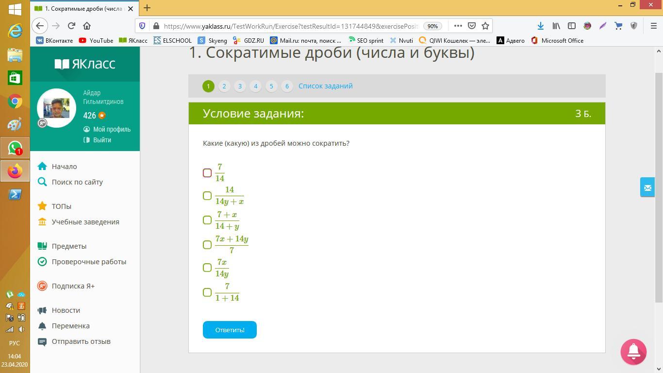 Сократи первую дробь на 7 и получится 1/2