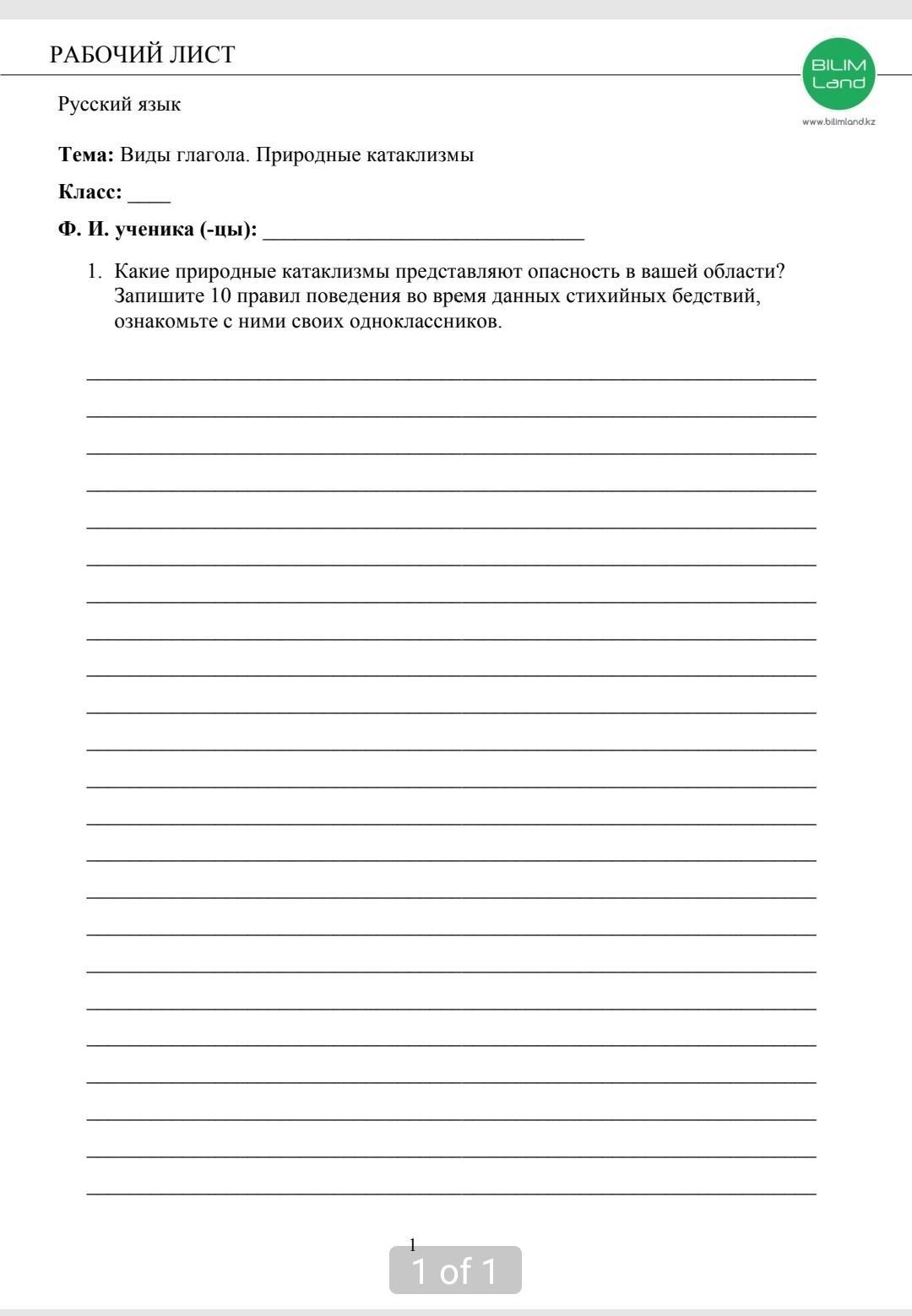 1)Какие природные катаклизмы представляют опасность в нашей области? Запишите 10 правил поведения во время данных стихийных бедствий, ознакомьте с ними своих одноклассников.