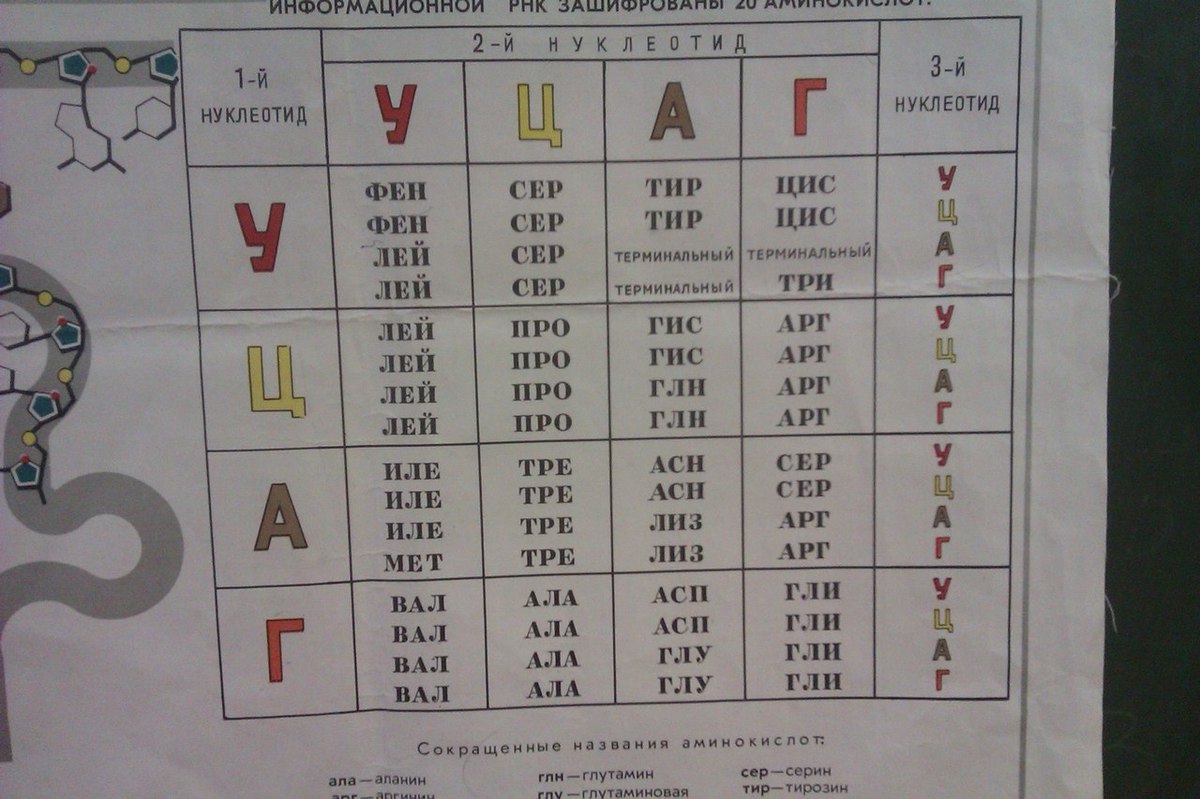 днк: ААА ТТТ ГГГ ЦЦЦ