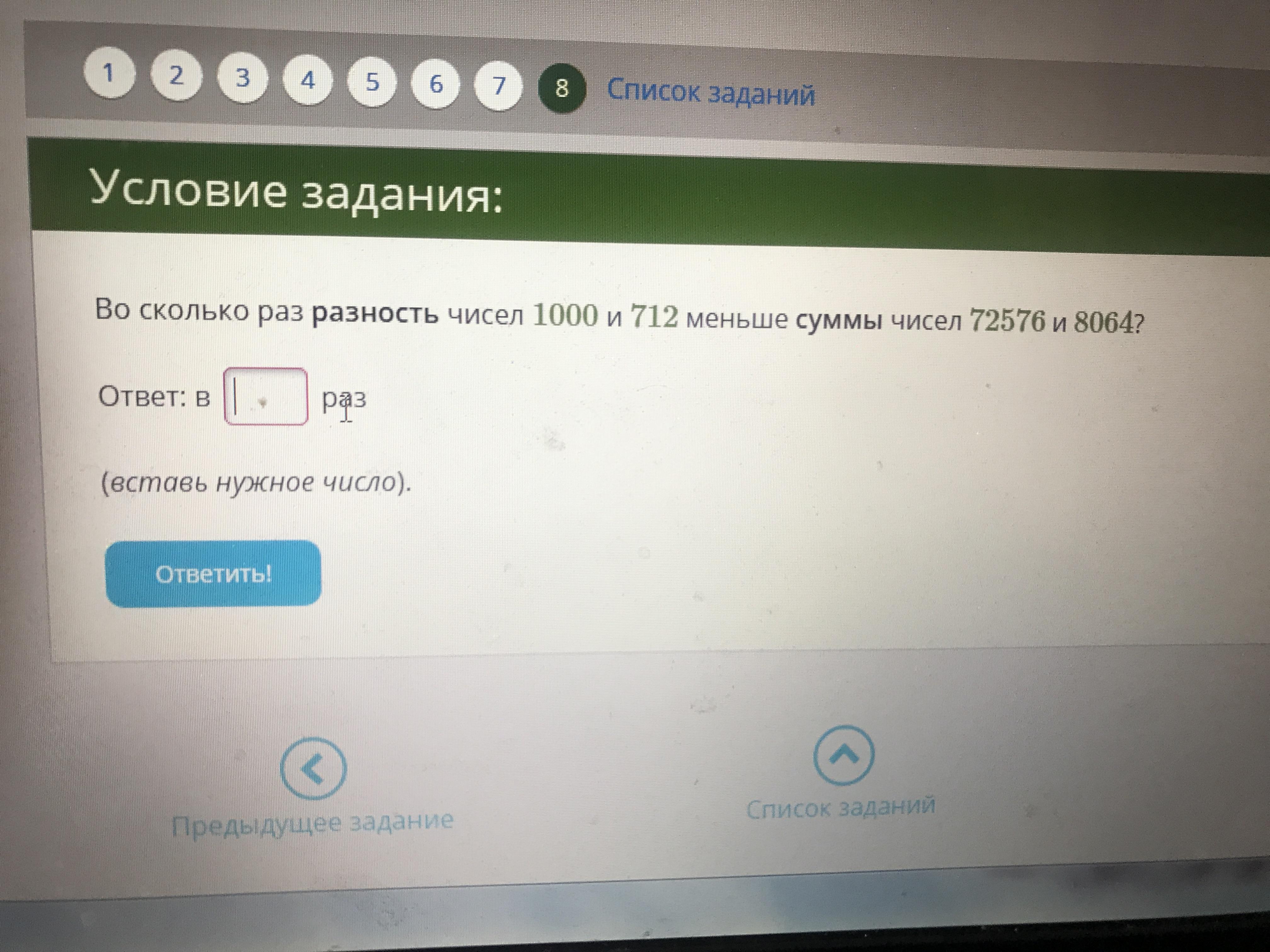 первое прибавляем (72576+8064) и после делим его на разницу (1000-712)= 280