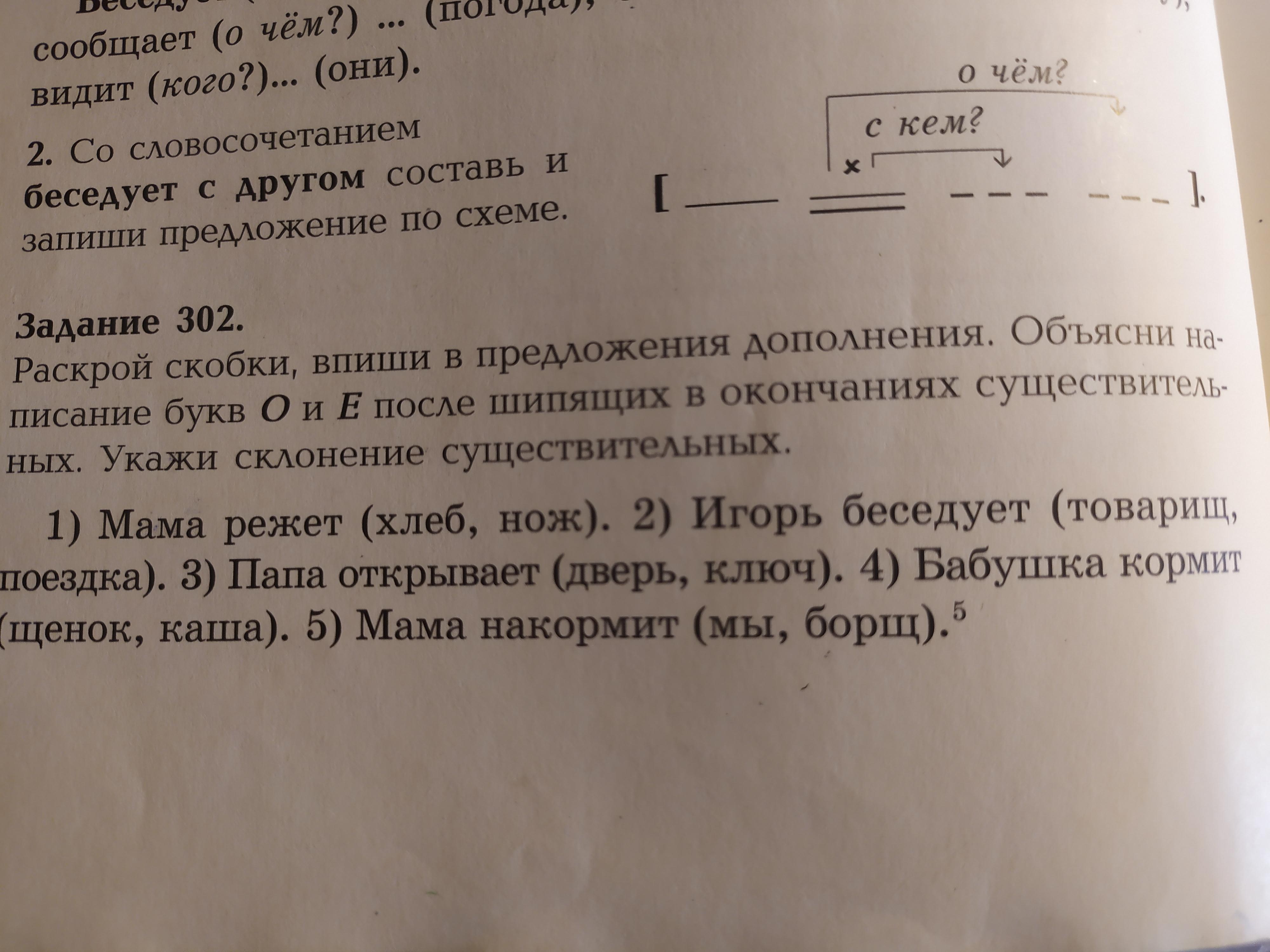 Раскрой скобки в предложения дополнение. Объясни написание букв О и Е после шипящих в окончаниях существительных. Укажи склонение существительных. Помогите пожалуйста !!