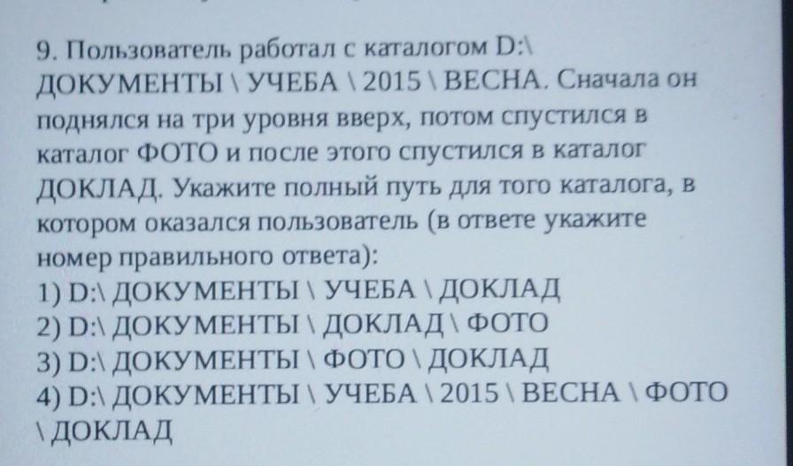 ПОМОГИТЕ ПОЖАЛУЙСТА 9. Пользователь работал с каталогом D:\