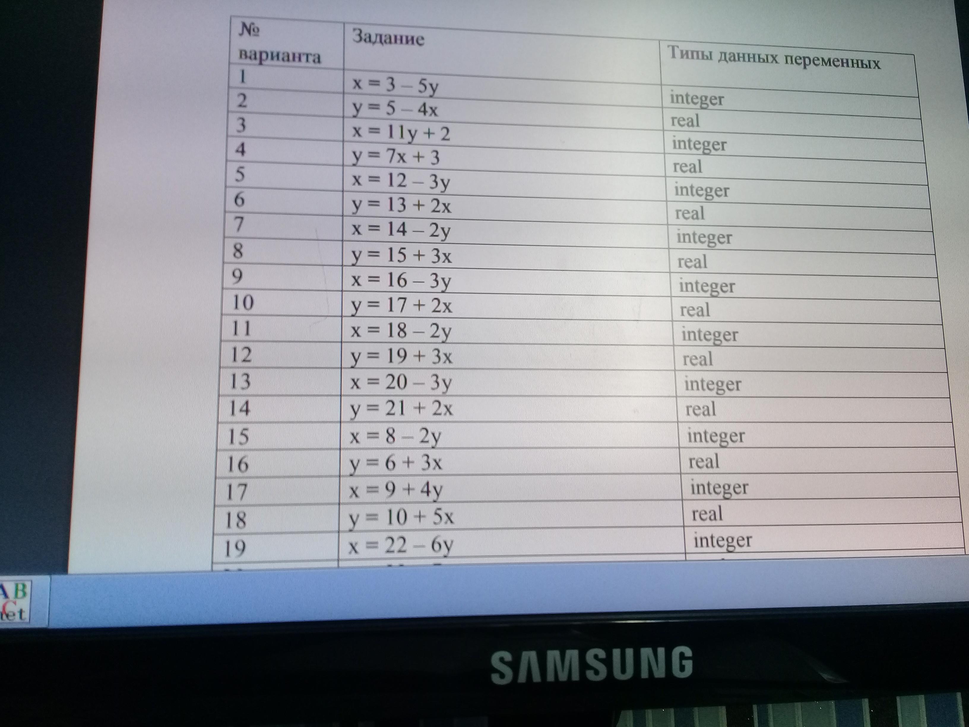 var x, y: integer;