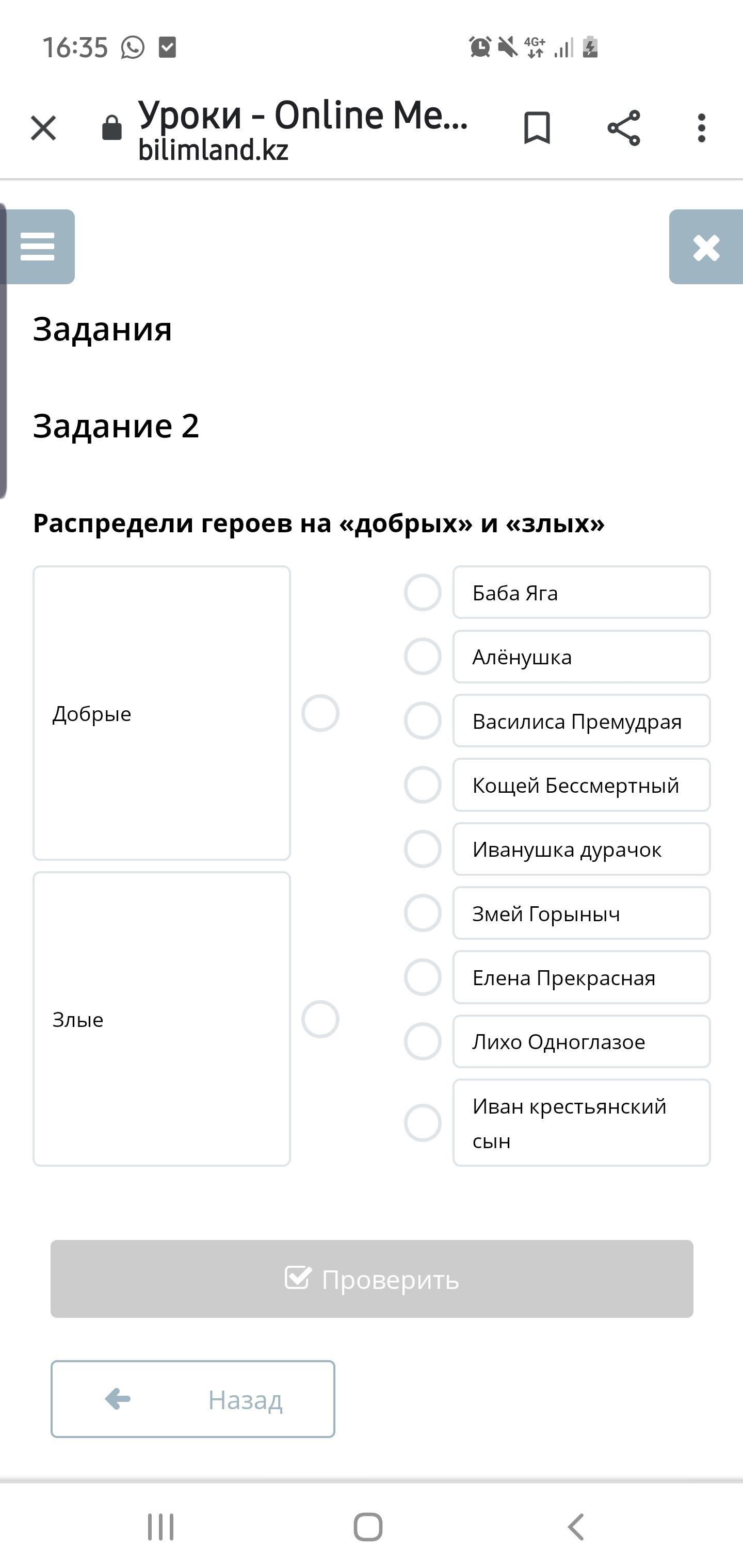 Злые: Баба Яга, Кощей Бессмертный, Змей Горыныч, Лихо Одноглазое.