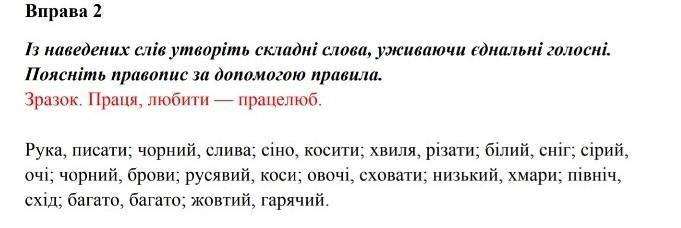 Ответ: рукопис, чорнослив, сінокос, хвилеріз, білосніжний, сіроокий , чорнобровий, русокосий, овочесховище, низькохмарий(можливо не так) північно-східний, багато-багато, жовтогарячий.
