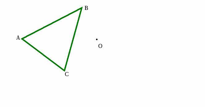 Дан треугольник АВС и точка О. Построить фигуру F, на которою отображается данный треугольник при центральной симметрии с центром О.