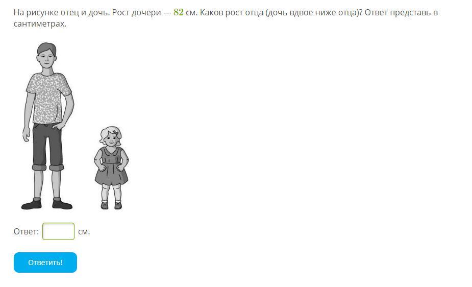 Если дочь ниже отца в 2 раза ,то значит что отец выше дочери в 2 раза , значит мы должны умножить рост дочери на 2: