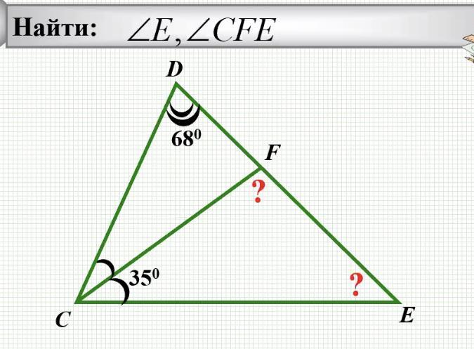 а угол cfe и fce какие? по какому свойству мы находим угол cfe?