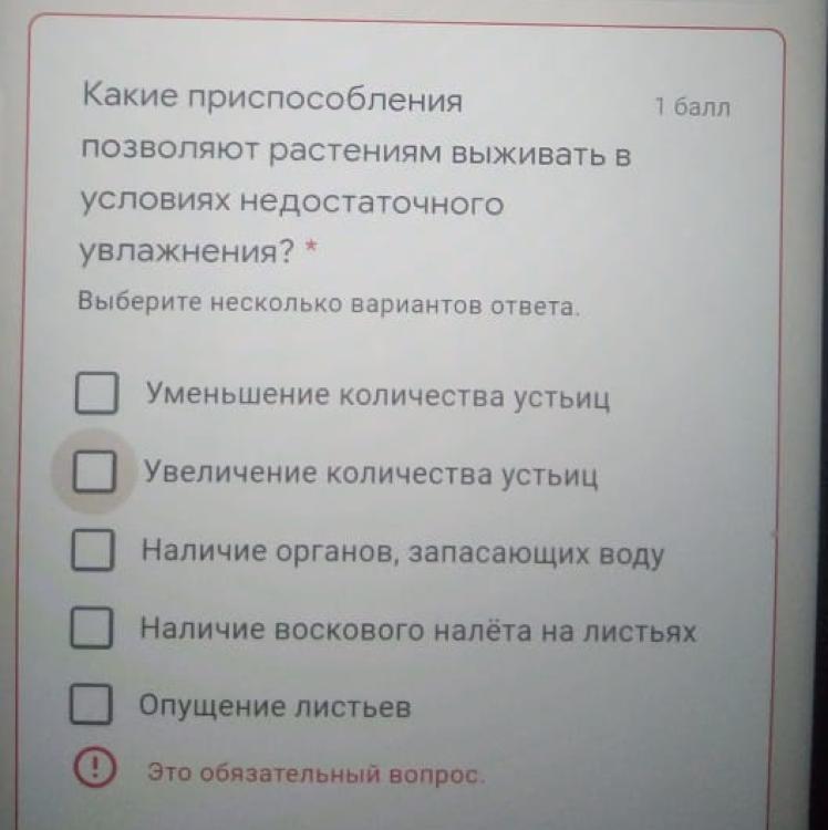 Наличие органов, запасающих воду