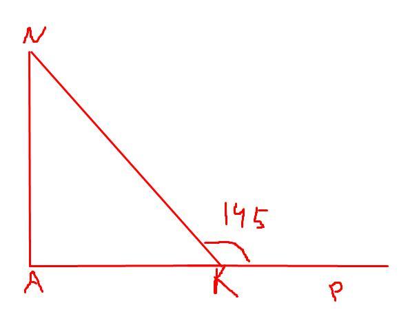 Так как сумма смежных углов равна 180 угол K равен 180-145=35