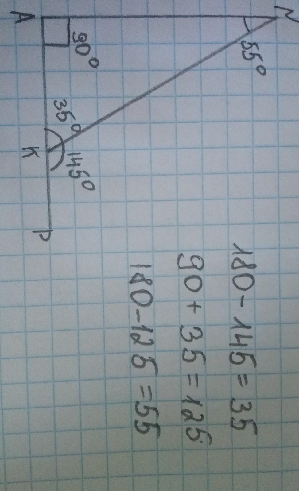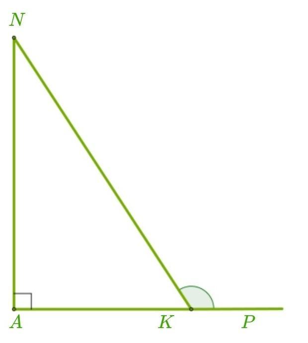 Дан прямоугольный треугольник ANK и внешний угол угла ∡ K.
