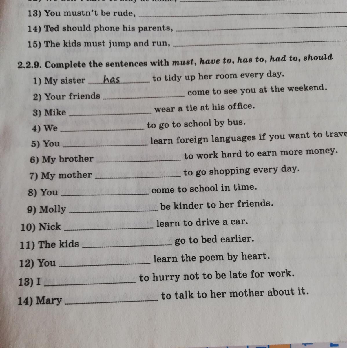 9. has to