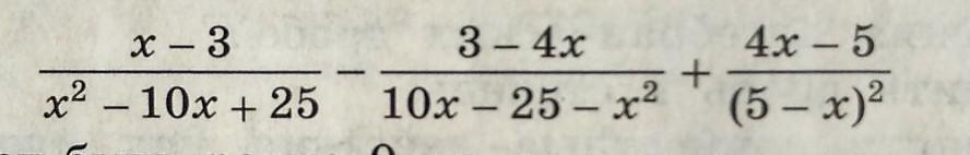 (х-3)/(х-5)²+(3-4х)/(х-5)²+(4х-5)/(х-5)²=(х-3+3-4х+4х-5)/(х-5)²=(х-5)/(х-5)²=1/(х-5), эта дробь могла быть равной нулю, если бы числитель равнялся нулю, а знаменатель был отличен от нуля. А у нас в числителе единица, которая, как известно, нулем не станет.) Доказано.