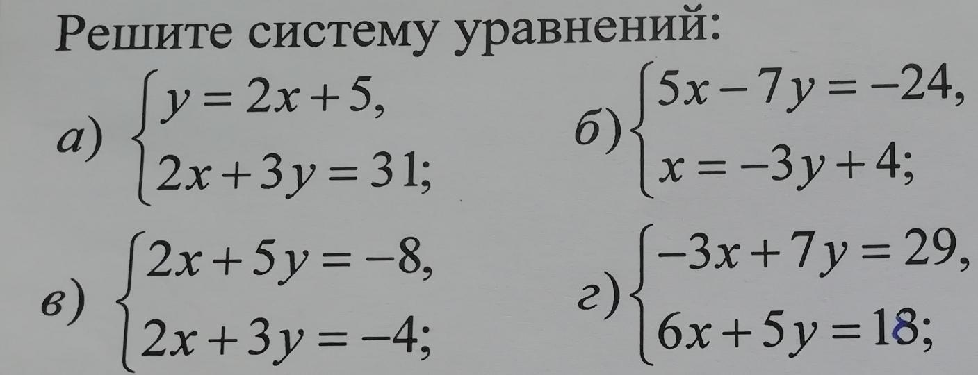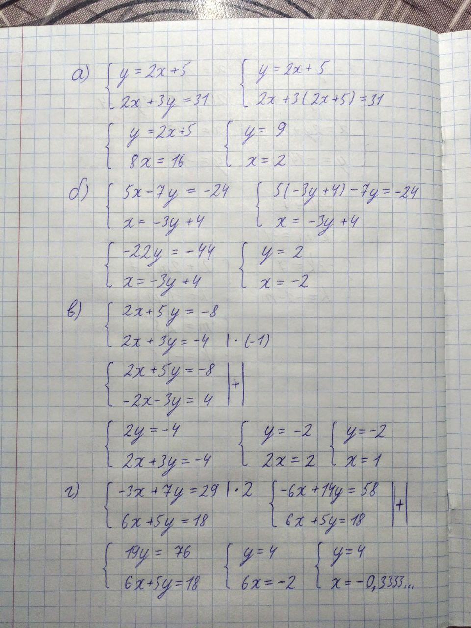Первые два примера решаются методом подстановки, остальные два - сложения.