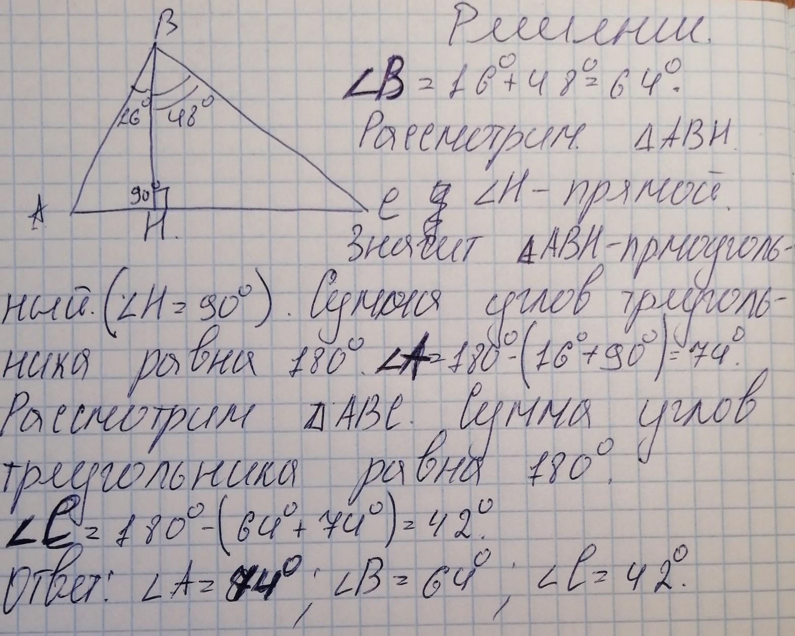 1.Найдите все острые углы треугольник abc рисунок. 4.167 2.Высота остроугольного треугольник abc образует сторонами выходящими из той же вершины углы 16 градусов и 48 градусов. Найдите углы треугольника abc
