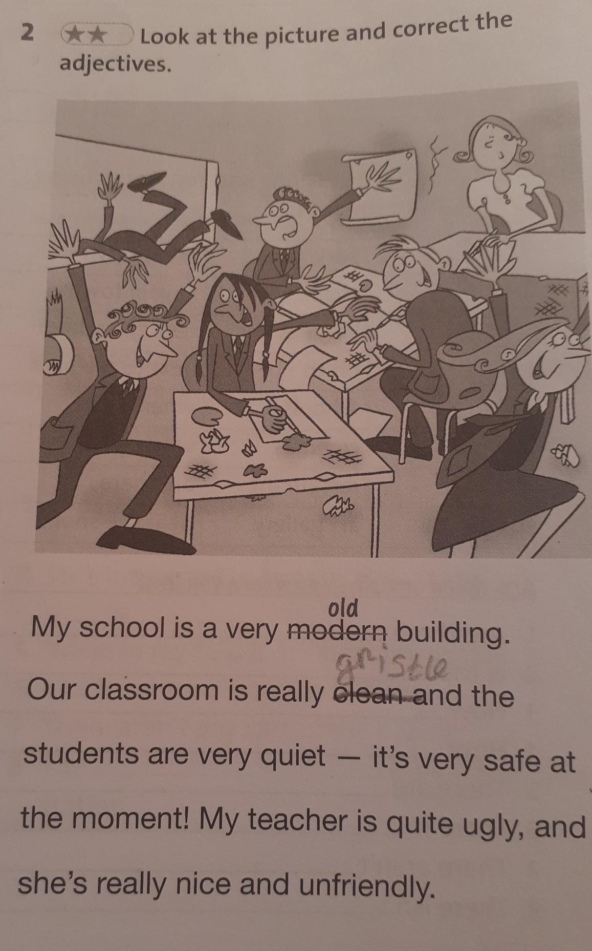 Our class is really messy and the students are very noisy - it is not safe at the moment ! My teacher is beautiful and kind , and she is really nice and friendly