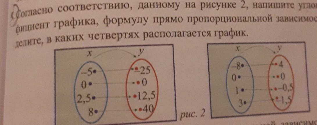 Согласно соответствие данному на рисунке два Напишите угловой коэффициент графика формула прямой пропорциональной зависимости Определите в каких четвертях располагается график